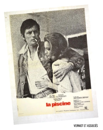 Affiche du film La Piscine, de 1969, avec Romy Schneider et Alain Delon. Imprimeur : Affiches Gaillard. (60 × 80 cm).