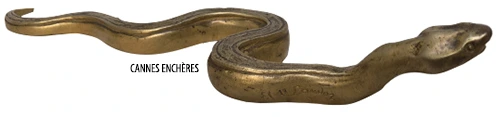 Serpent de Floride, vers 1925-1930, presse-papiers en bronze à patine or, signé Édouard Marcel Sandoz (1881-1971), fondeur Contenot. (3,7 × 24 × 6,5 cm).