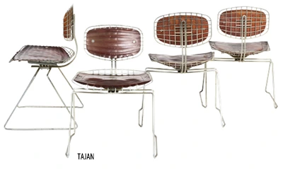 Suite de quatre chaises en treillis de fil en acier galvanisé et cuir, de Michel Cadestin (né en 1942) et Georges Laurent (XXe siècle) provenant du musée Georges-Pompidou à Paris. (82,5 × 57 × 57 cm).