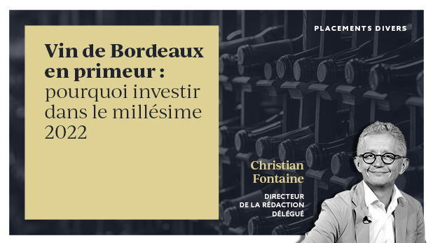 La campagne de commercialisation des grands crus de Bordeaux 2022 en primeur bat son plein. Le millésime est exceptionnel. Pour allier plaisir et potentiel de plus-value, nous vous conseillons les seconds vins, des Châteaux Angelus et Lafite Rotschild notamment.