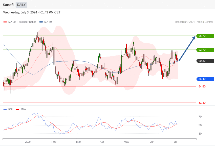 Le titre Sanofi affiche une tendance positive, avec un point pivot de 86,40 euros.