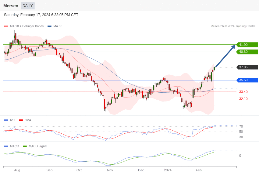 L’analyse graphique de Mersen est positive au-dessus de 35,50 euros.