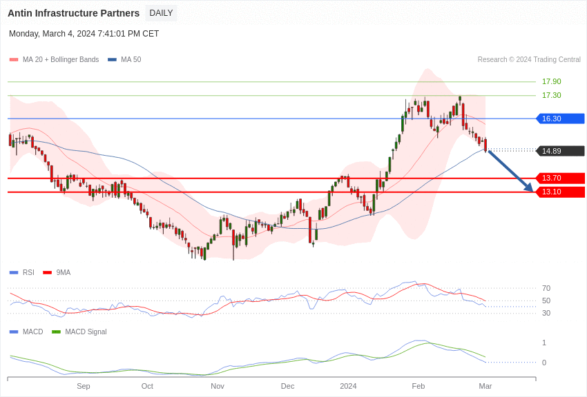 L’analyse graphique de l’action Antin Infrastructure Partners est négative sous 16,30 euros.